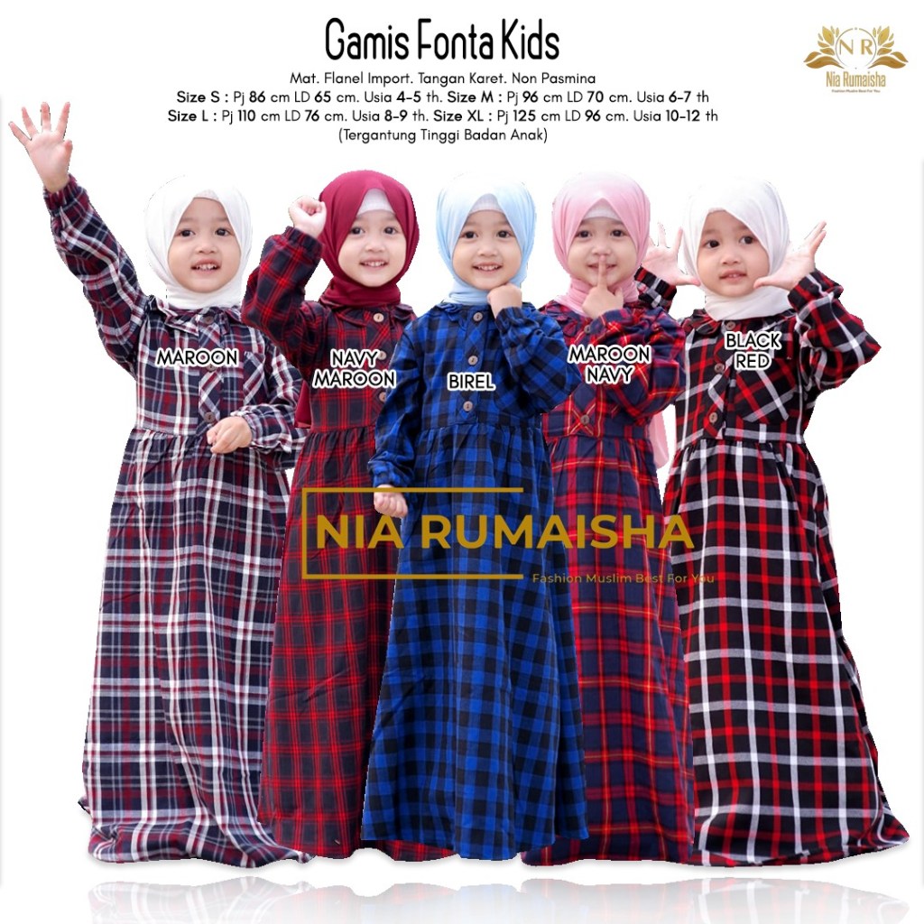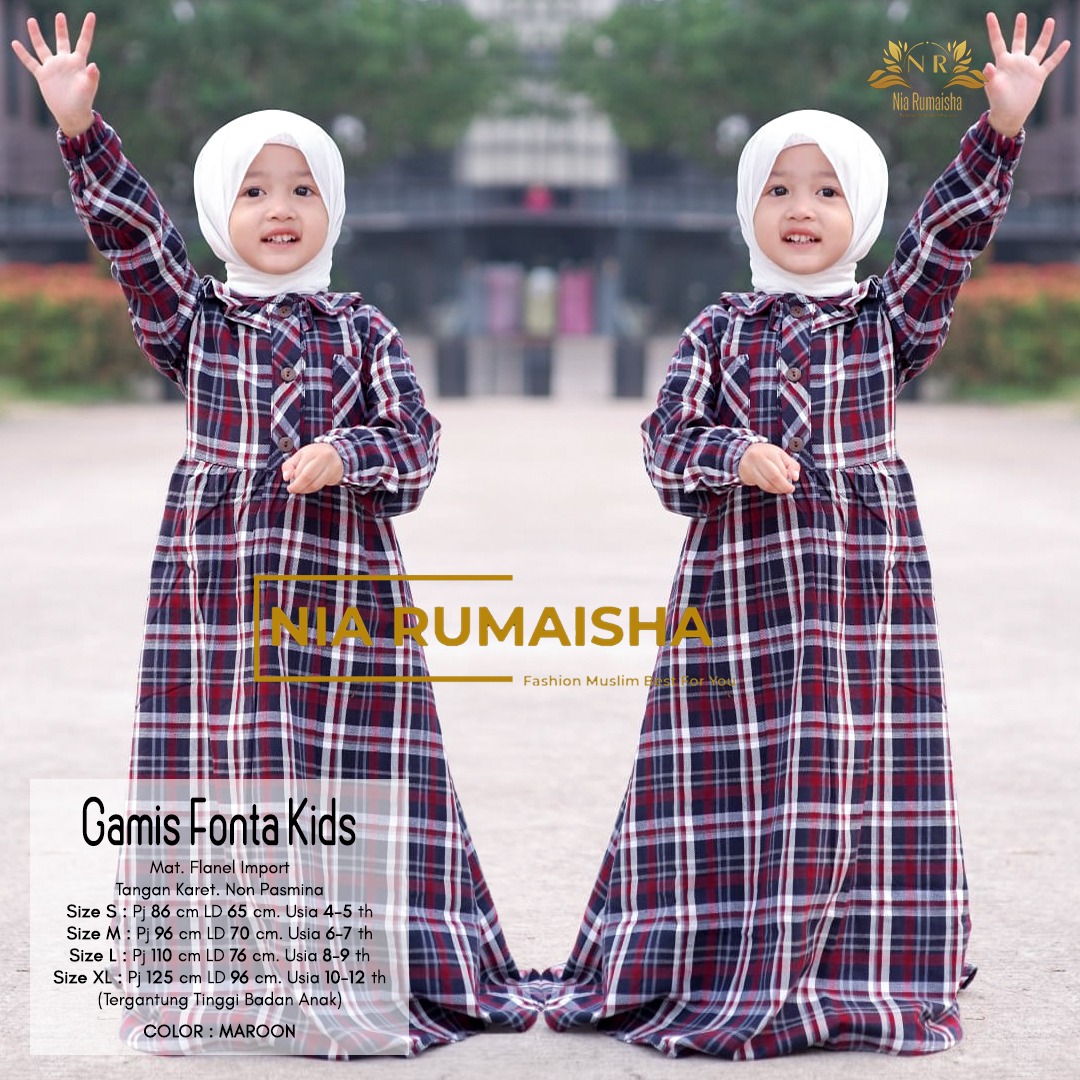 Gamis Fonta kids S-M 182000 dan L-XL 192000